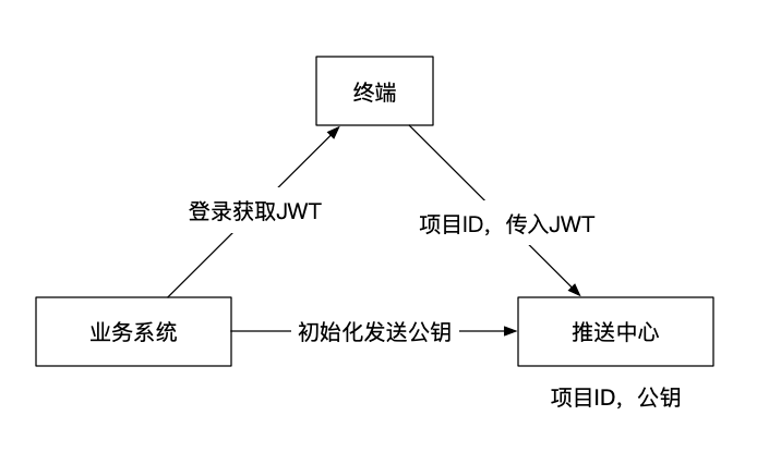 - 业务系统使用推送中心初始化公钥,推送中心维护项目和公钥的集合。